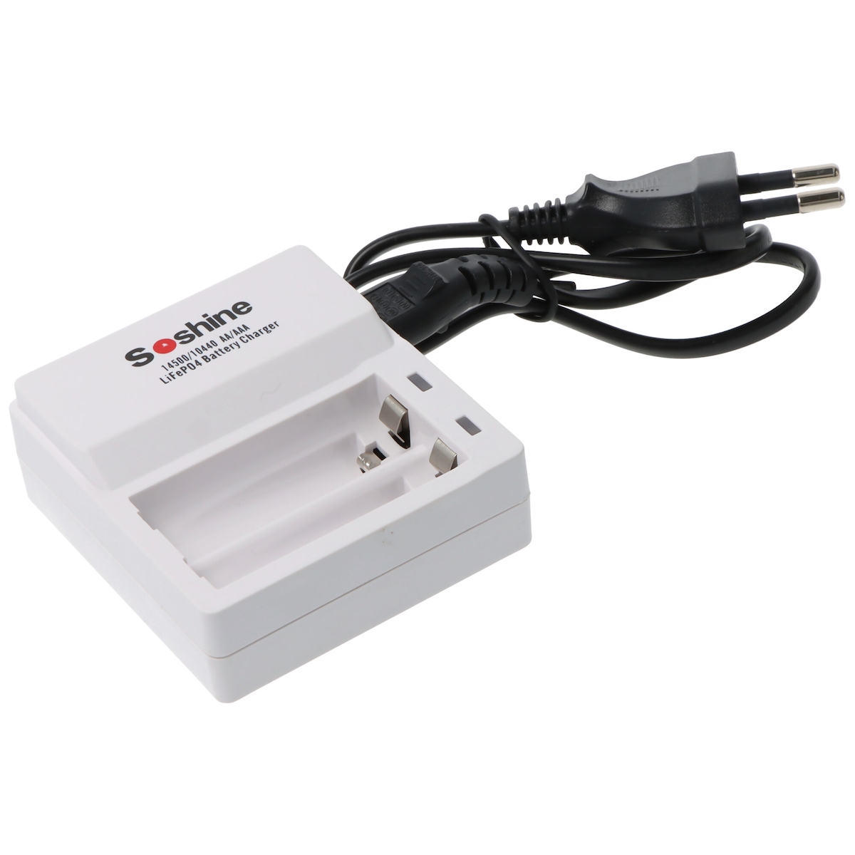 Soshine Ladegerät für LiFePO4 IFR 3,2 Volt Akkus, nur Akkus mit 3,2V ladbar, mit 2 Ladeschächten, für 14500, 10440 und AAA, AA Akkus