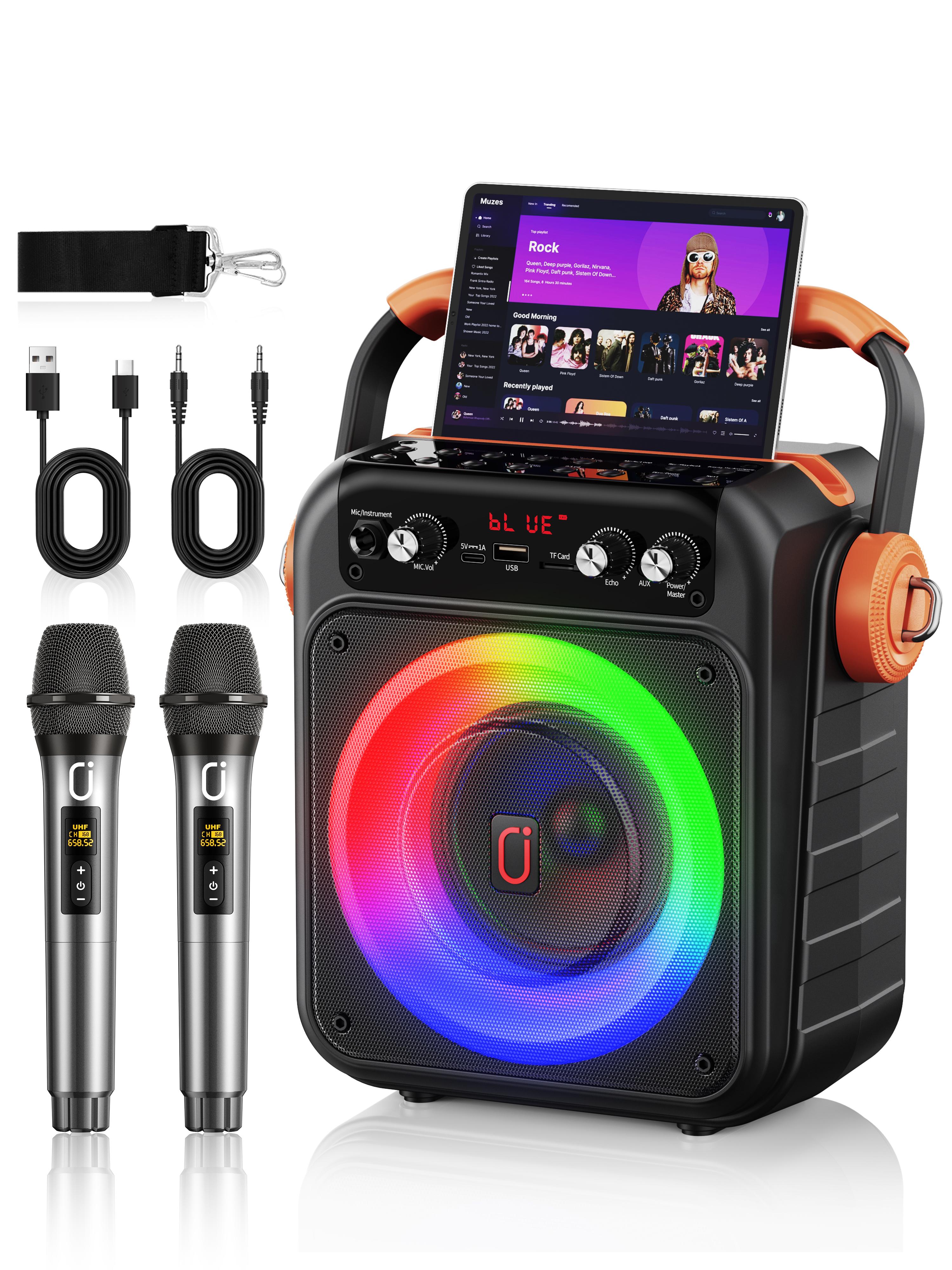 Karaoke Machine with 2 Wireless Microphones: Portable Karaoke Bluetooth 5.3 Light Speaker, PA System Home Party with Subwoofer