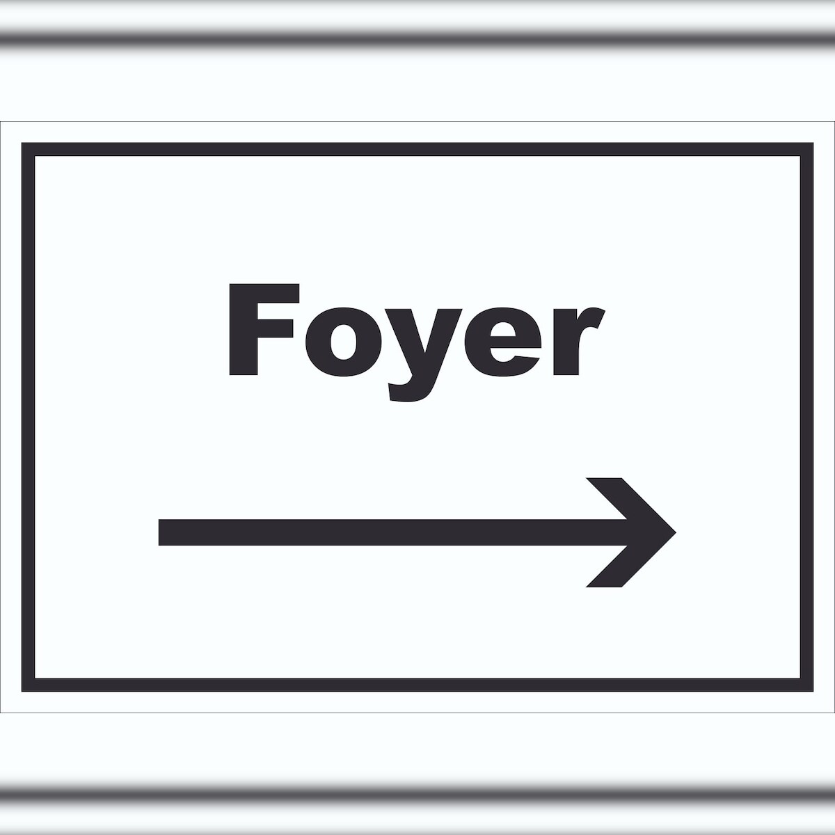 HB-Druck Foyer Schild mit Text und Richtungspfeil rechts Eingangshalle waagerecht A2 Rückseite selbstklebend