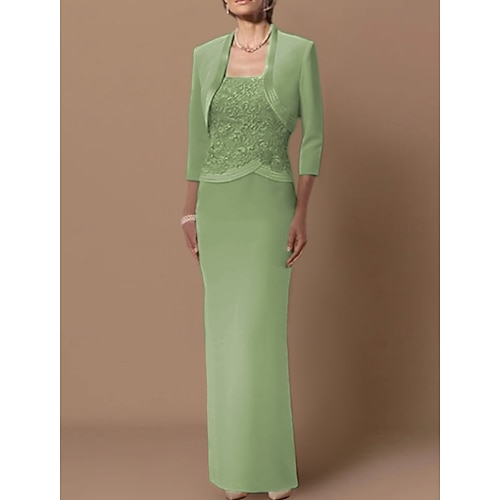 Tubino Colonna Lunghezza al pavimento Abito da invitata a nozze Abito da cerimonia per signora Senza Maniche Scollatura dritta Elegante Taglie Forti Ospite di nozze Chiffon Raso Pizzo Abiti Corti con