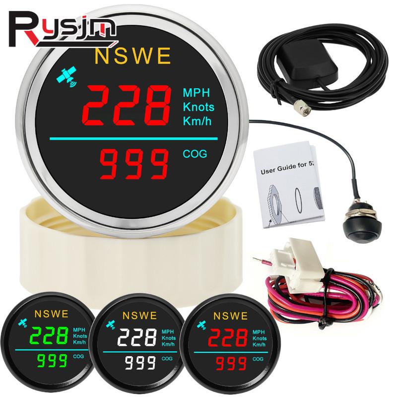 Universeller 52mm LCD Digitaler GPS-Tachometer mit GPS-Antenne MPH Knoten Km/h COG Geschwindigkeitsmesser für Auto Boot Motorrad 12V/24V schwarz weiße