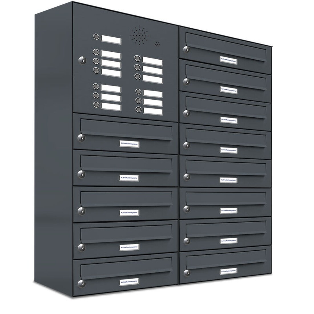 AL Briefkastensysteme 15 Fächer Premium Wand Briefkasten Anlage RAL 7016 Anthrazit Grau, Post A4, robust, wetterfest, Artikelnummer: 132P15EA2KSP7016