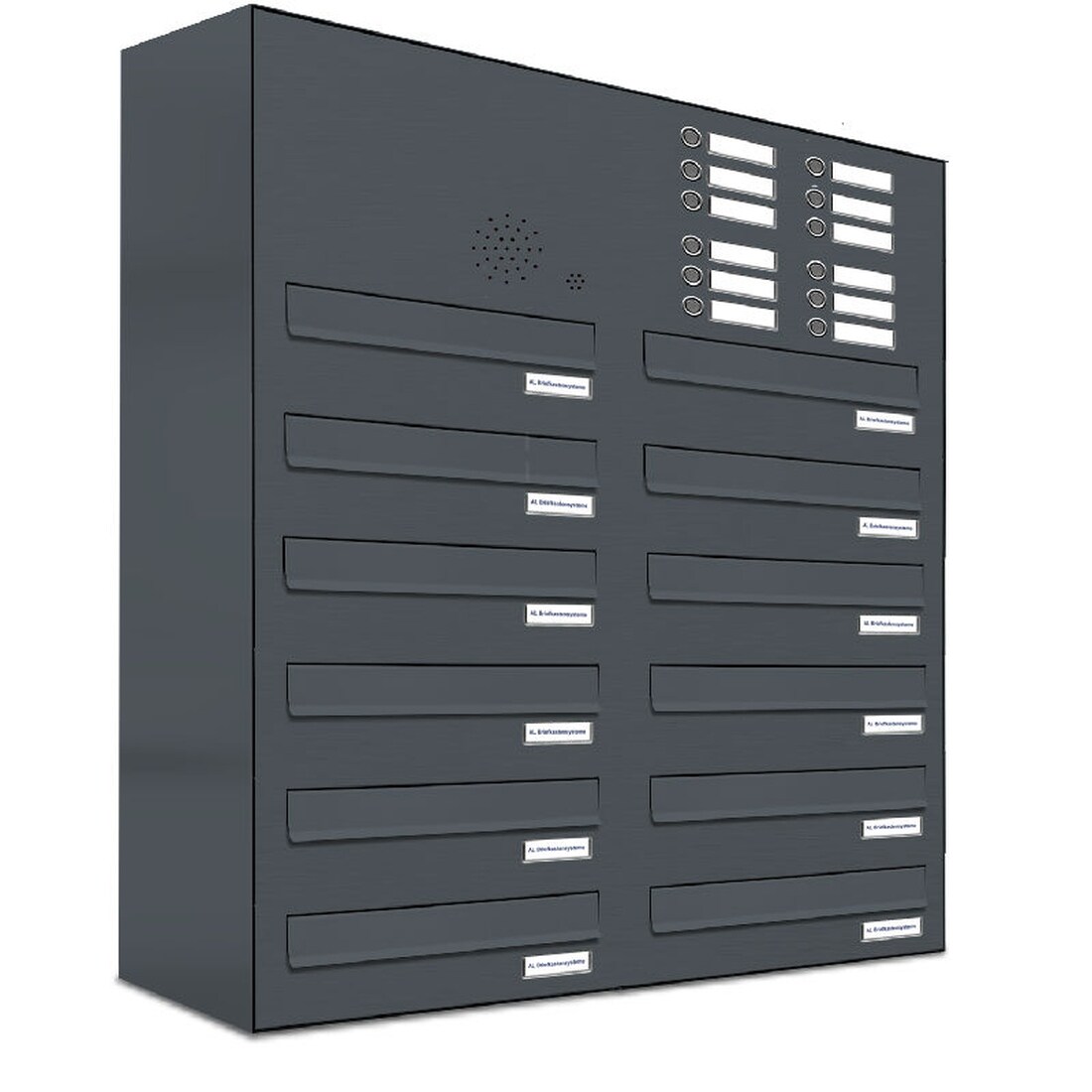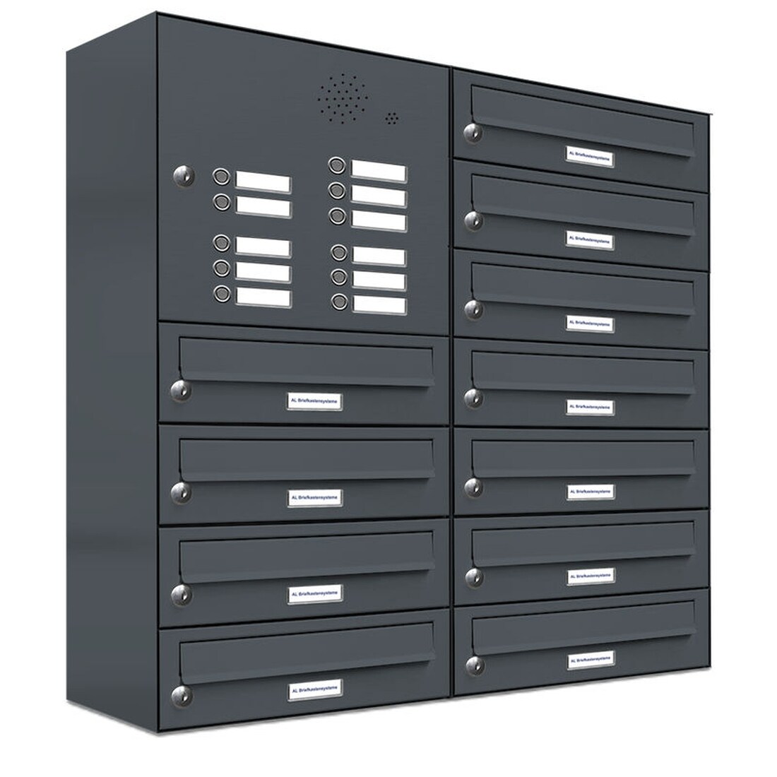 AL Briefkastensysteme 12 Fächer Premium Durchwurf Briefkasten in RAL 7016 Anthrazit Grau, Post A4, robust, wetterfest, Artikelnummer: 132P12DZ2KSP7016