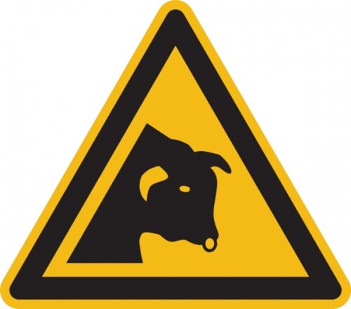Warnschild, Warnung vor Stier W034 - ASR A1.3 (DIN EN ISO 7010) - 200 mm Folie selbstklebend