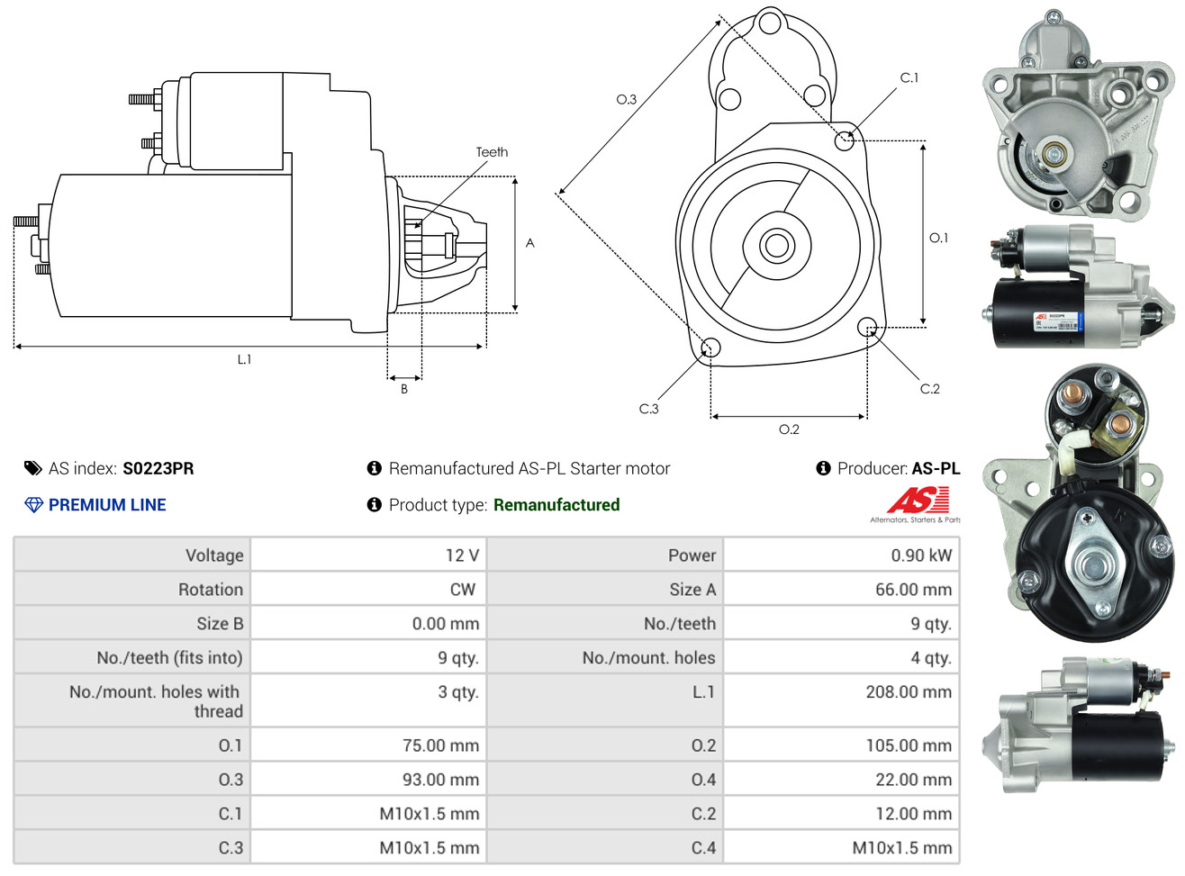 AS-PL Starter S0223PR 12V für RENAULT GENERAL MOTORS VOLVO NISSAN OPEL 8200466758 93198232 9512934