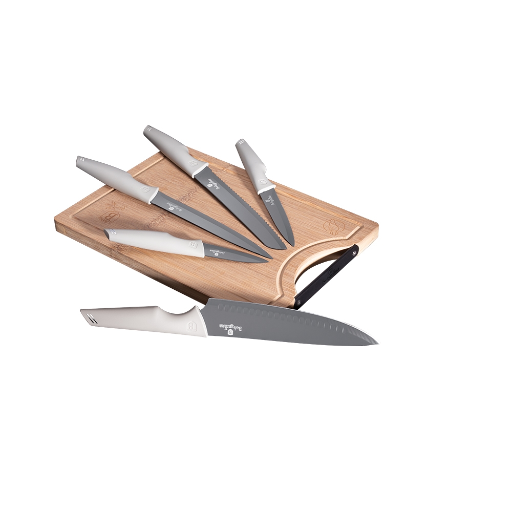 Berlinger Haus Aspen Collection 6-tlg. Messerset mit Bambus-Schneidebrett (mattgrau)