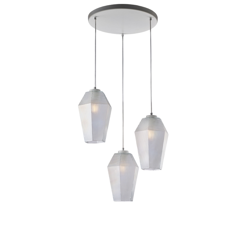 BeLight Prisma Pendelleuchte Weiß, 3x G9, Glas transparent mit Relief, Ø47 cm - BL303-S3-TR