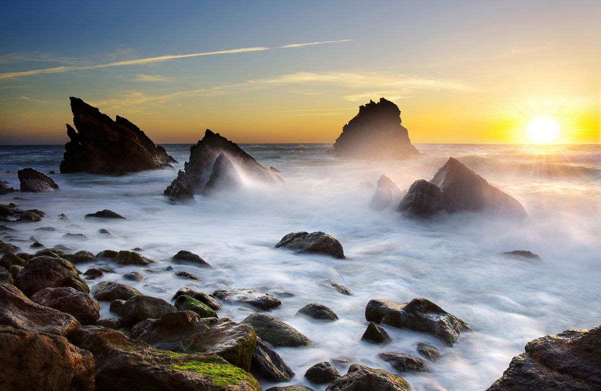 Fototapete PAPERMOON "Adraga Beach Portugal", bunt, B:5,0m L:2,8m, Vlies, Tapeten