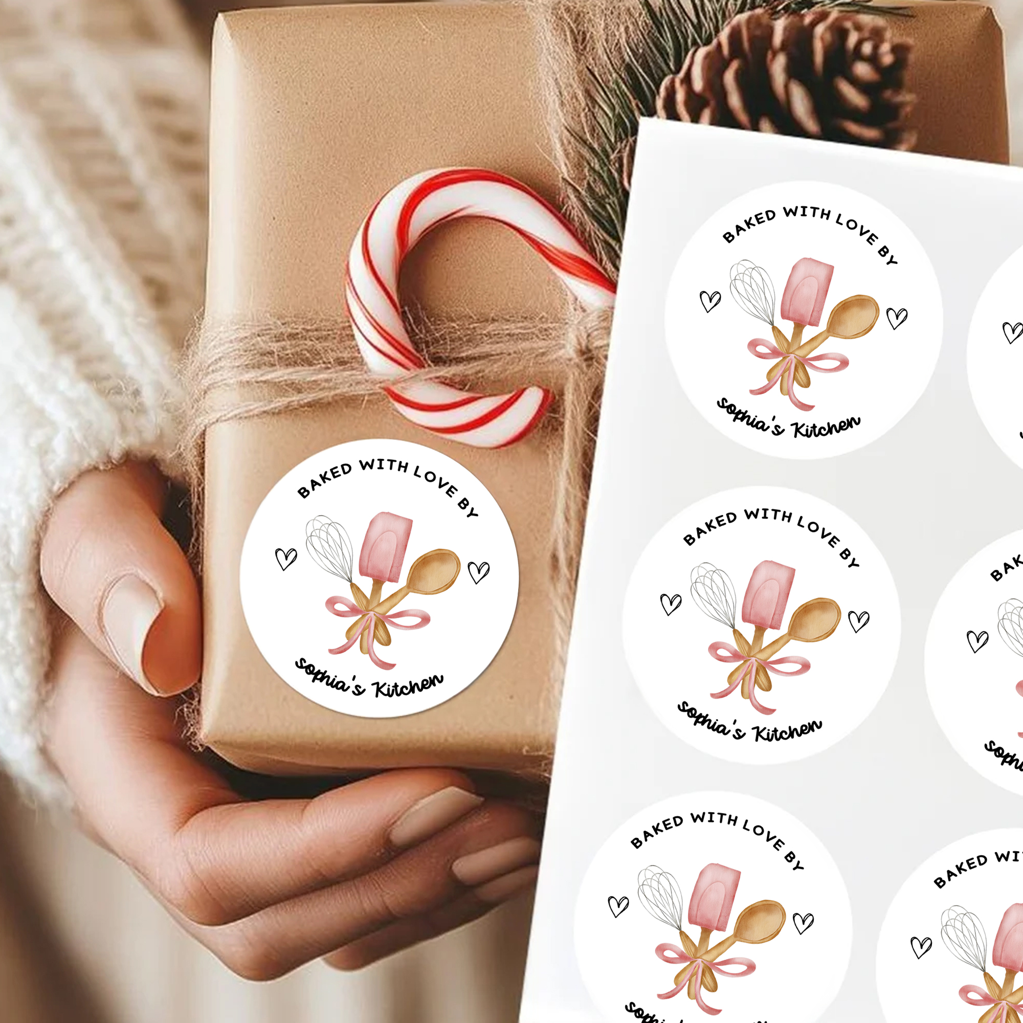 Personalisierte Baked with Love Selbstklebende Wasserdichte Aufkleber mit Text Geschenk Dekor Backen Party Favor für Kochen Liebhaber