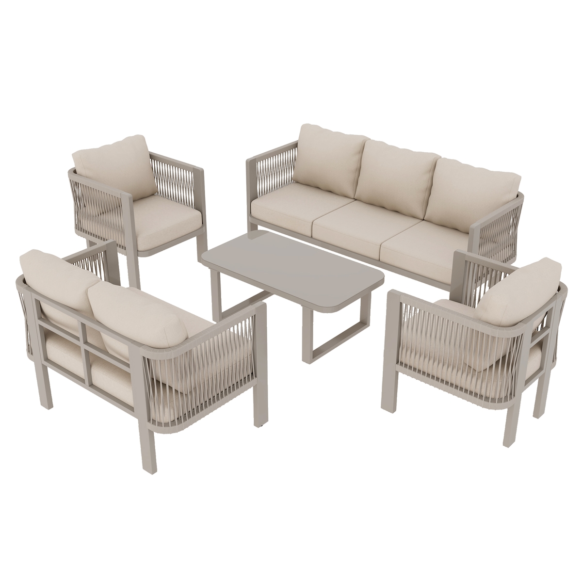 Merax Gartenlounge Set 5-teiliges, Verzinktes Eisen, inkl. 3er Sofa, 2er Sofa, 2 Einzelsessel & Couchtisch, Beige