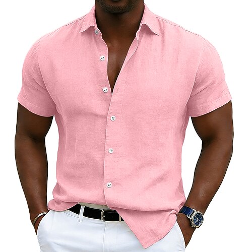 Per uomo Camicia di lino Camicia Estiva Abbigliamento da spiaggia Camicia con Bottoni Semplice Casuale Vacanza Blu Bianco Verde chiaro Rosa Manica Corta Collo ripiegato Estate Abbigliamento Puro