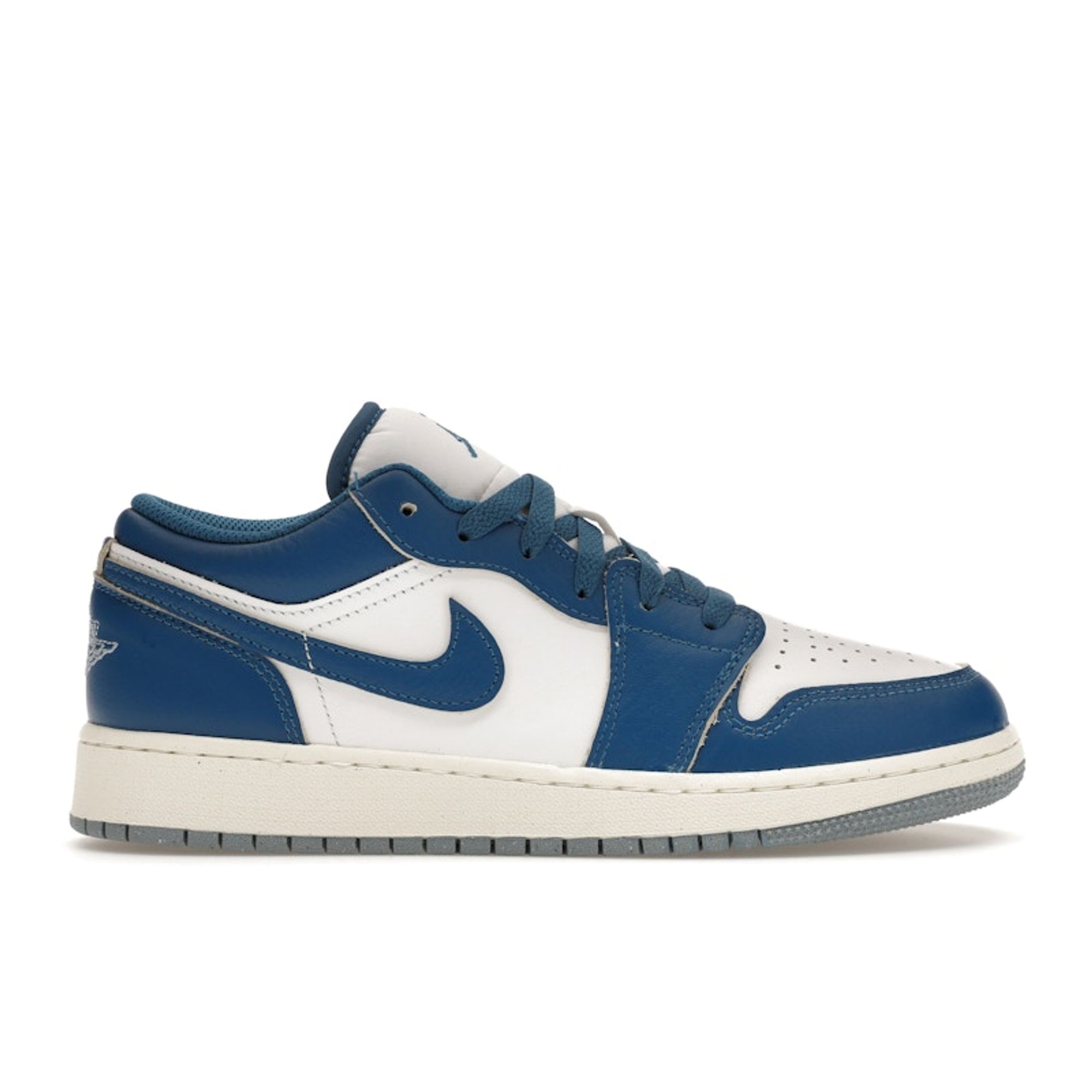 Air Jordan 1 Low SE GS Bleu Industriel Chaussures Baskets Enfants Blanc Bleu-Gris Voile FN9137-141 cm