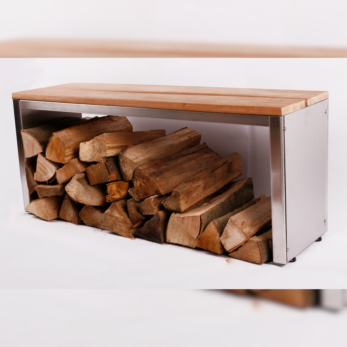 Szagato Sitzbank mit Holzlager 100x30cm, Edelstahl (Holzlagerbank, Bank mit Kaminholz / Brennnholz)