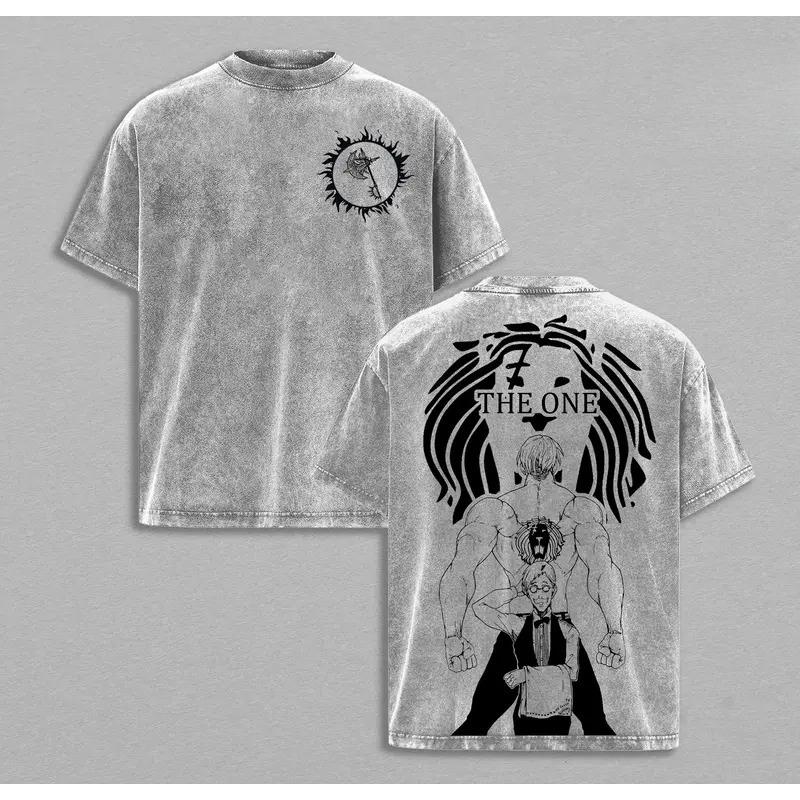 Escanor Trykt T-skjorte The Seven Deadly Sins Anime Klær Menn Kvinner Bomulls T-skjorter Retro Vasket Tee Harajuku Oversized T-skjorte cm brun