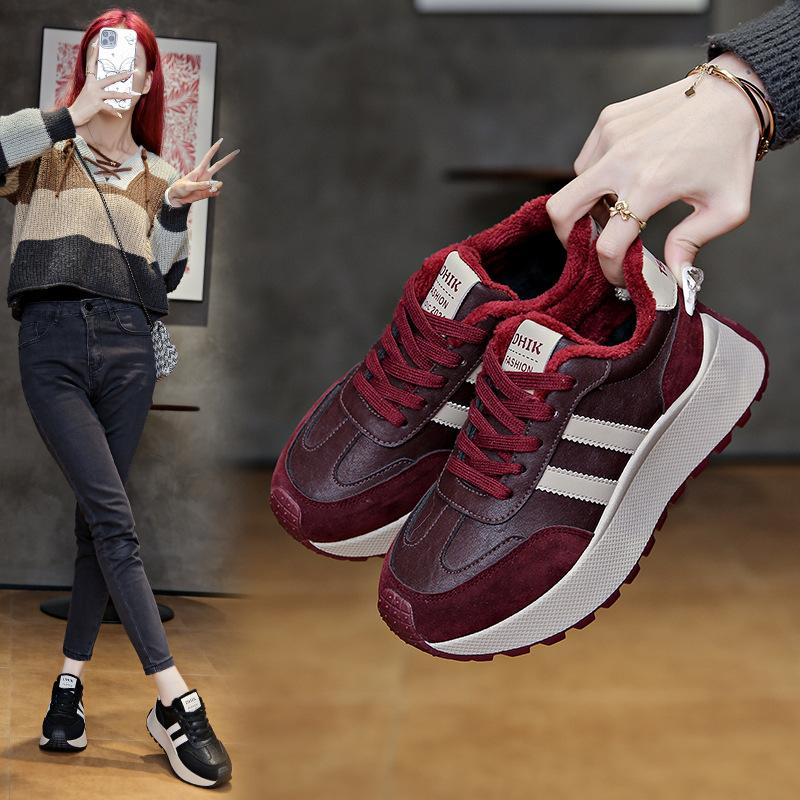 ins Koreansk versjon av de nye fløyel Forrest Gump-skoene dame 2025 vinter student sport pappa-sko plattform fritidssko BN027 cm brun