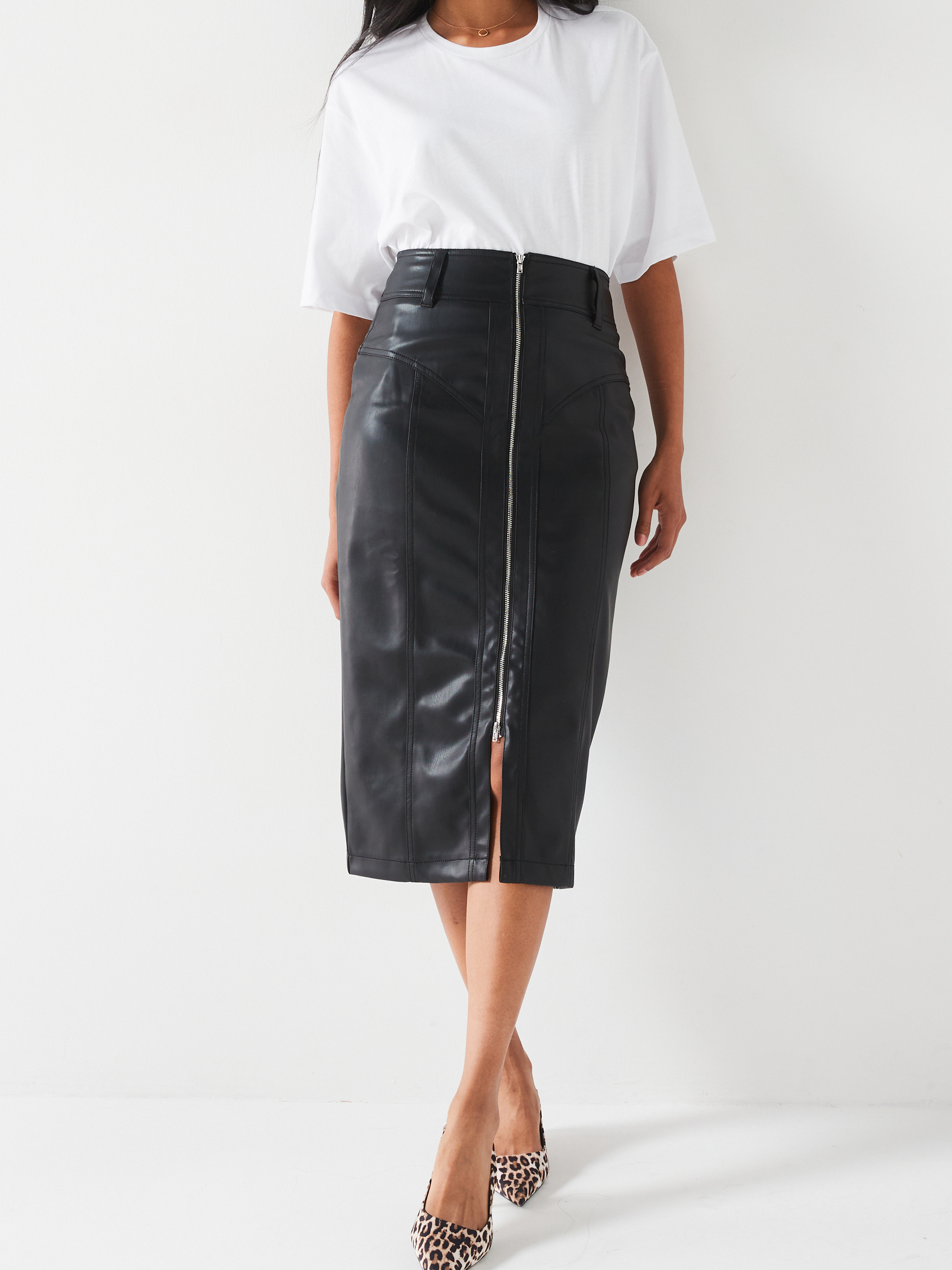 V by Very Womens Black Faux Leather Zip Front Midi Skirt - Size 16 UK | V by Very Sale | Discount Designer Brands