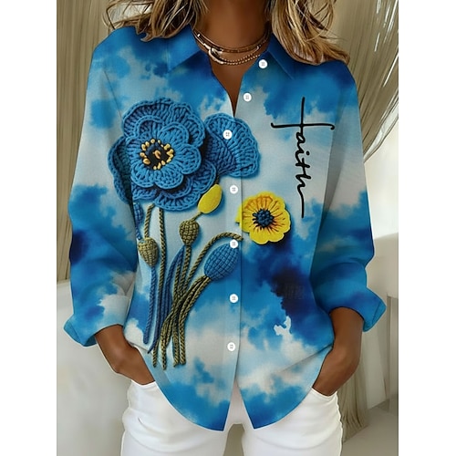 Per donna Camicia Camicia button-down Camicia casual Bottoni Stampato Floreale Grafico Elegante Moderno Casual Manica Lunga Colletto a Camicia Top Regolari Quotidiano Ferie Uscire Blu Primavera