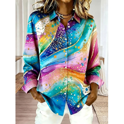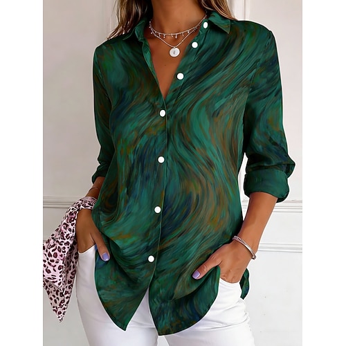 Per donna Camicia Camicia button-down Camicia casual Bottoni Grafico Astratto Elegante Casual Manica Lunga Colletto a Camicia Top Regolari Quotidiano Ferie Uscire Blu Estate Primavera