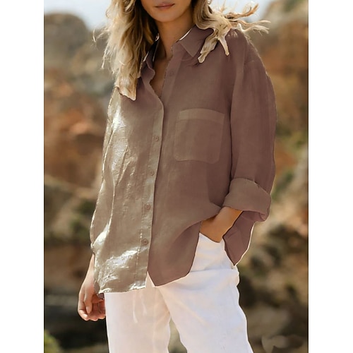 Per donna Camicia Camicia button-down Camicia casual Camicia da Spiaggia Bottoni Semplice Elegante Classico Moderno Manica Lunga Colletto a Camicia Top Regolari Quotidiano Ferie Uscire Bianco Cachi