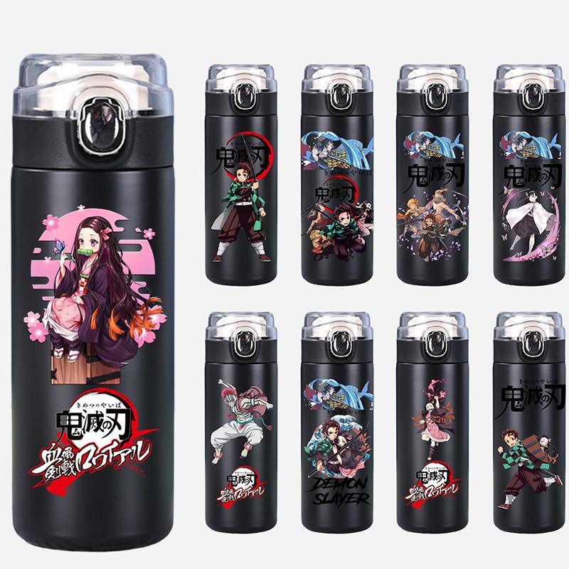 New Anime Demon Slayer Printed 400Ml Water Bottle Thermos Cup Portable Stainless Steel Leak Proof Camping Water Cup Kid Gifts