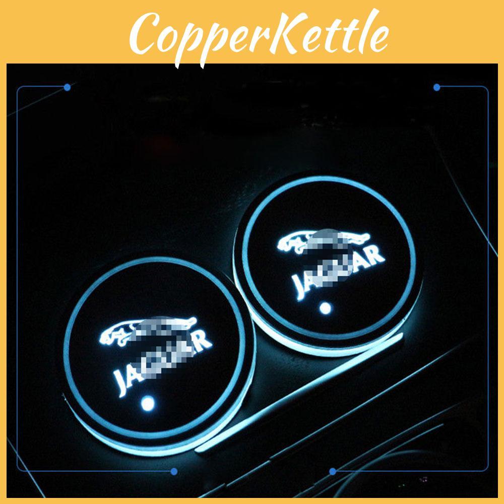 2pcs Led Car Cup Holder Pad Mat For Jaguar Auto Atmosphere Lights Gift Xmas
