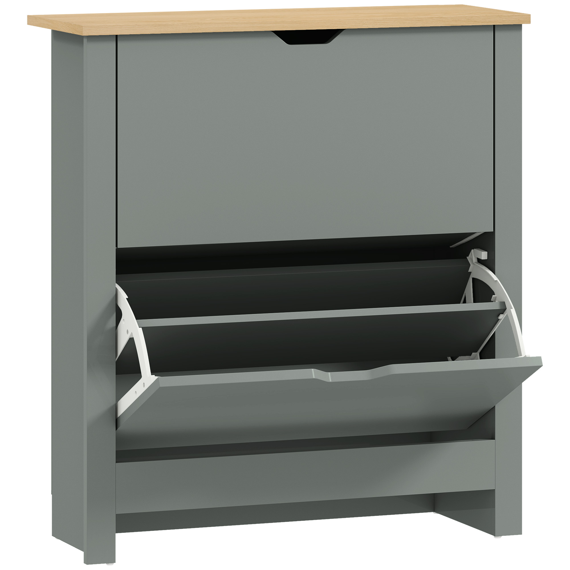 HOMCOM Slim Shoe Cabinet, Narrow Shoe Cupboard with 2 Flip Drawers, Adjustable Shelves for 12 Pairs of Shoes, Charcoal Grey