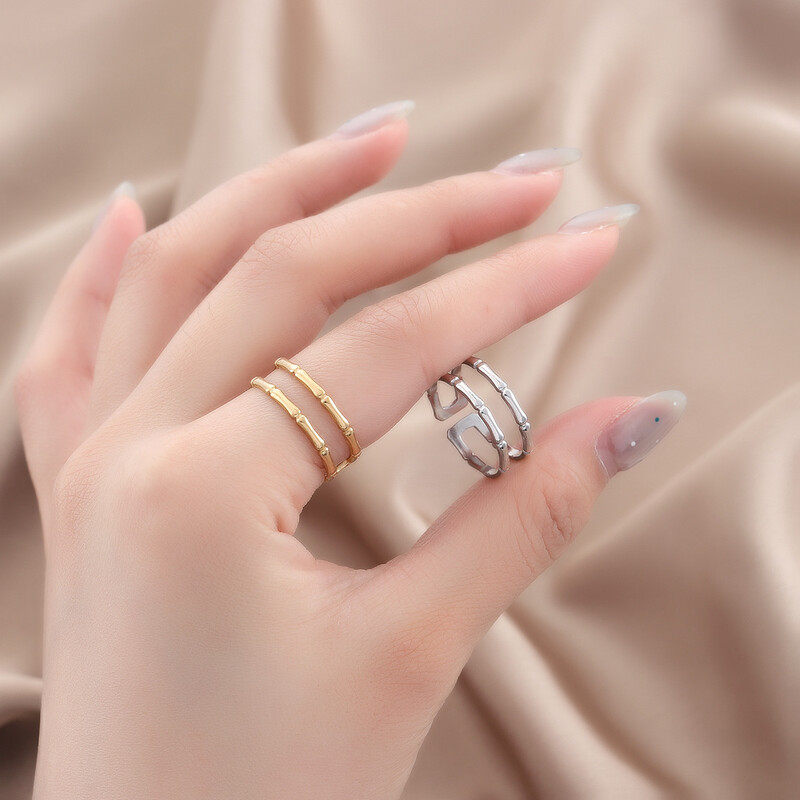 VoxorAI double-layer bamboo rings, open rings, adjustable rings All Seasons