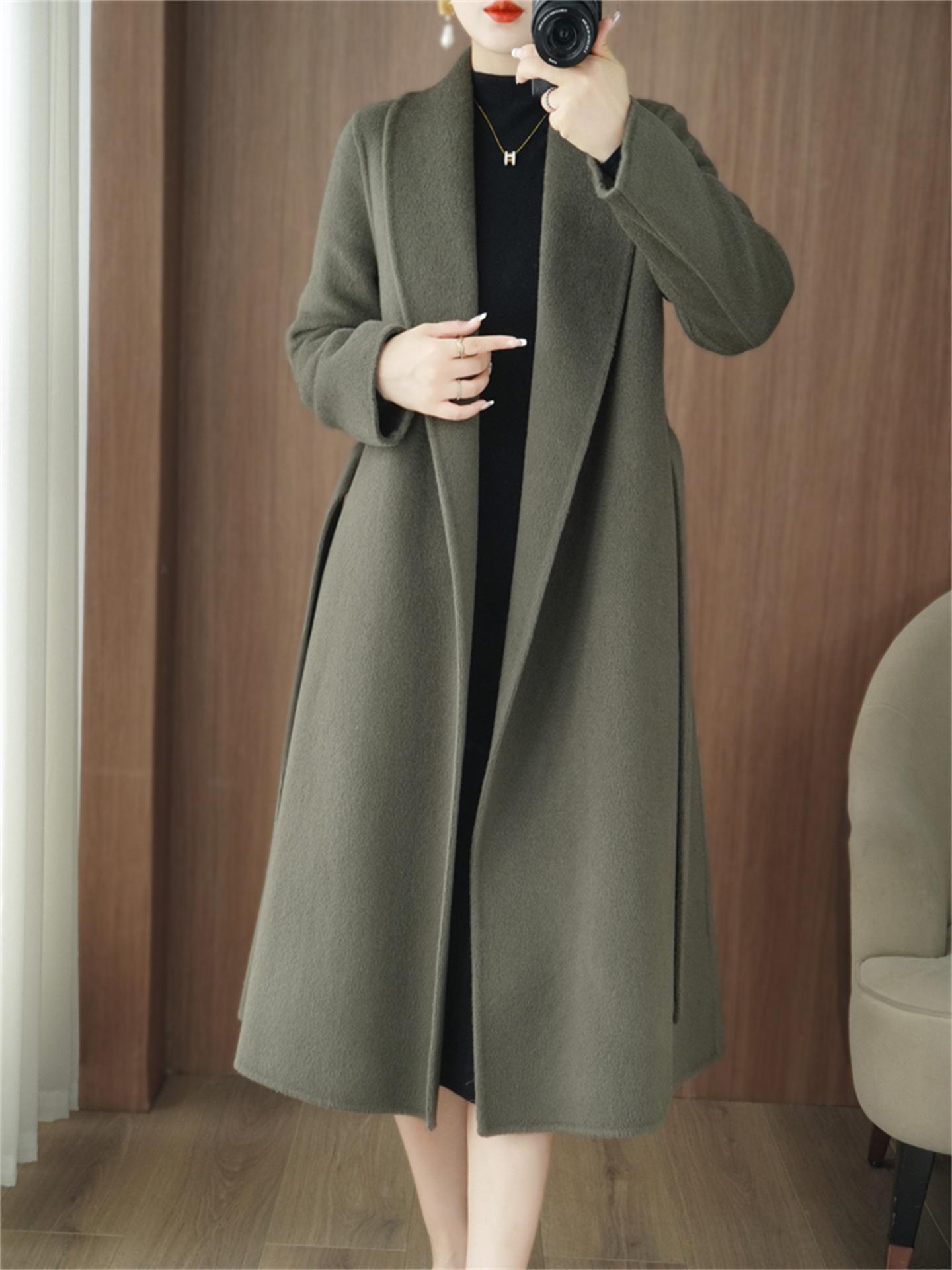 Women's Double-Sided Cashmere Belted Coat - Hepburn Style, Autumn/Winter 2025, Long Over-the-Knee Wool Tweed. cm