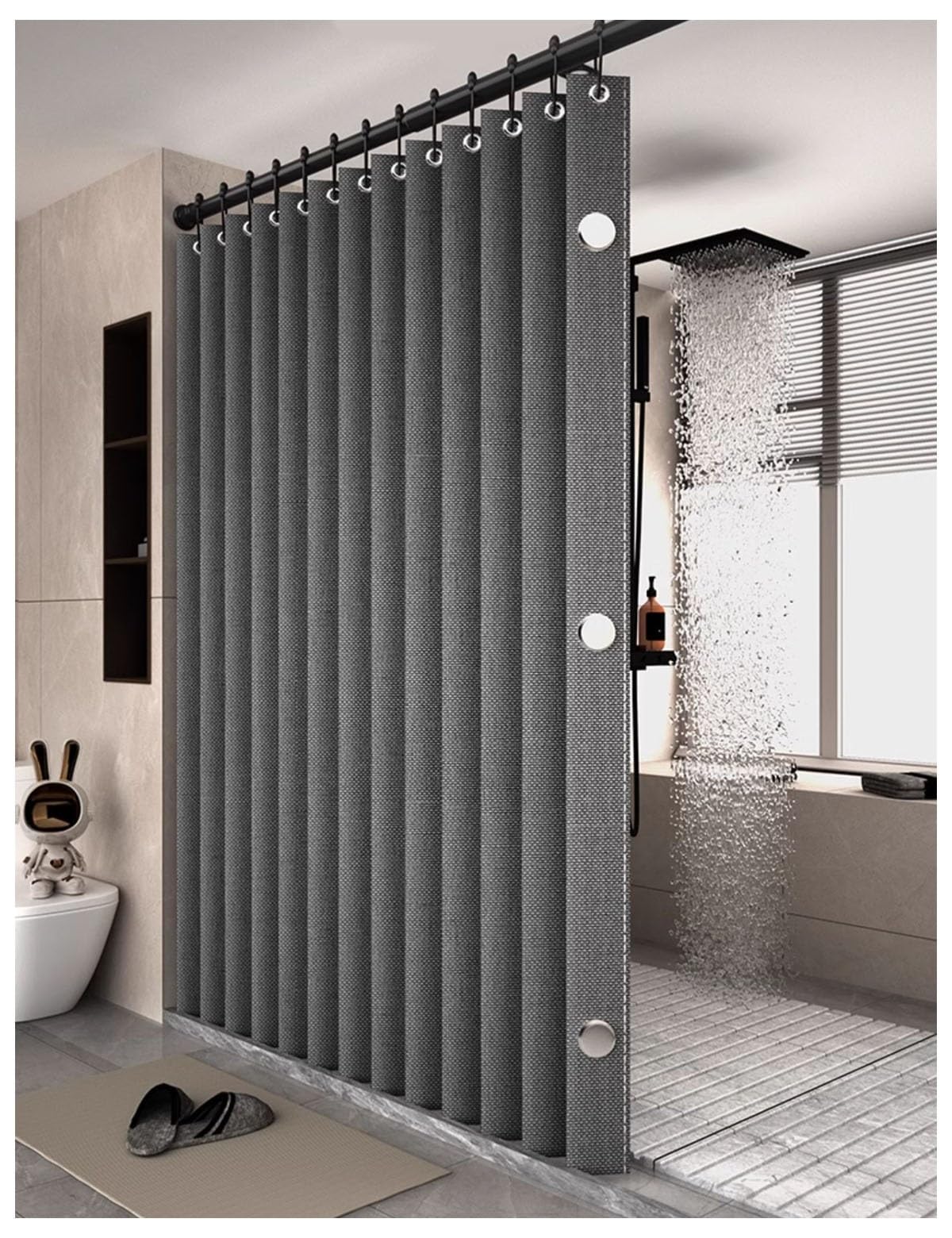 Baderomsfoldbart dusjforheng i lin med magneter Vanntett Egnet for walk-in-dusj Inkluderer ikke teleskopstang mørk grå farge