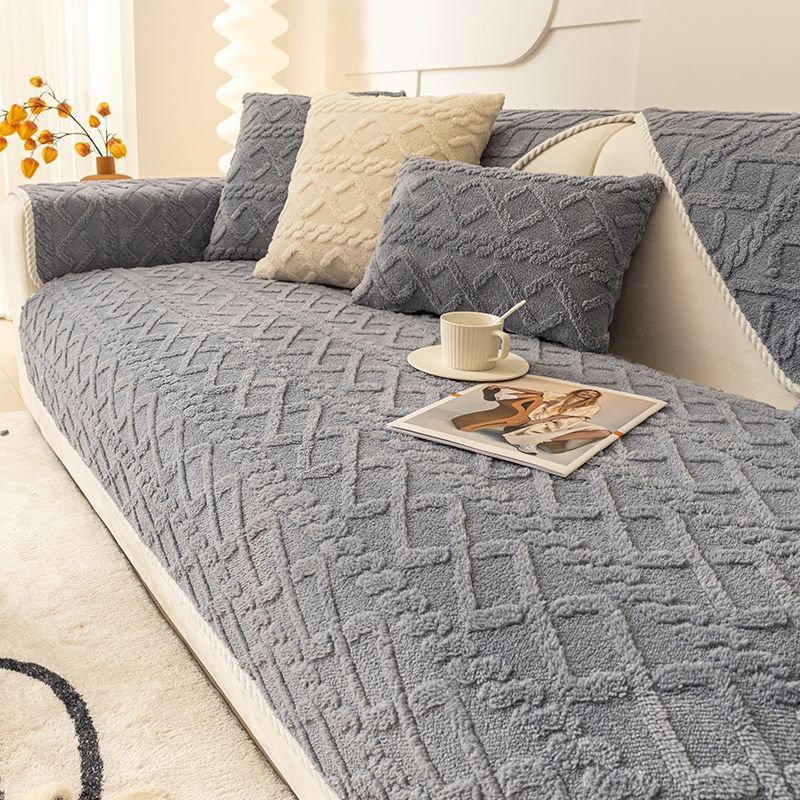 Solid Colored Plush Home Comfortable Sofa Mat Winter Thickened Anti Slip Seat Cushion Modern Minimalist Sofa Cover with Full Coverage Fabric