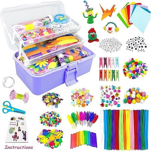 kit di forniture artigianali per regali di Natale per bambini - 1400 pezzi materiali artigianali scovolini con scatola portaoggetti - progetti creativi fai da te per ragazze ragazzi