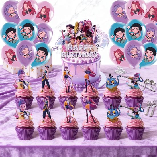 Geburtstagsparty Deko Set Themenbanner Kuchenaufsätze & Spiralballons für K-POP Musik Tanz Thema Feier Rosa Mädchen Partyzubehör cm