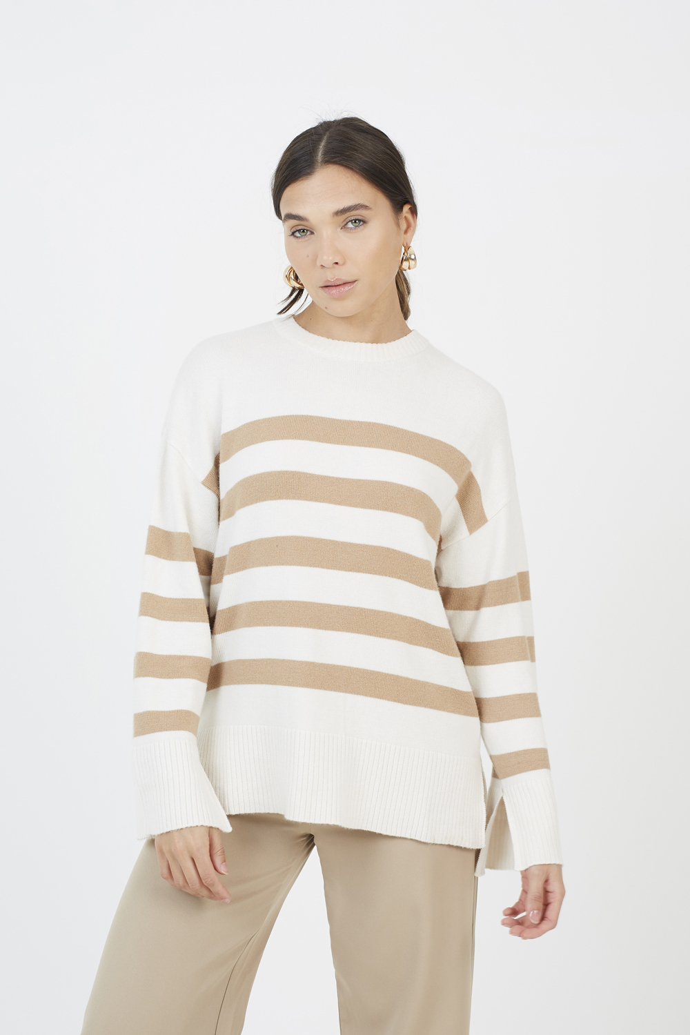 Brave Soul Womens Ivory Striped Loose Fit Jumper With Wide Sleeves - Size Medium | Brave Soul Sale | Discount Designer Brands