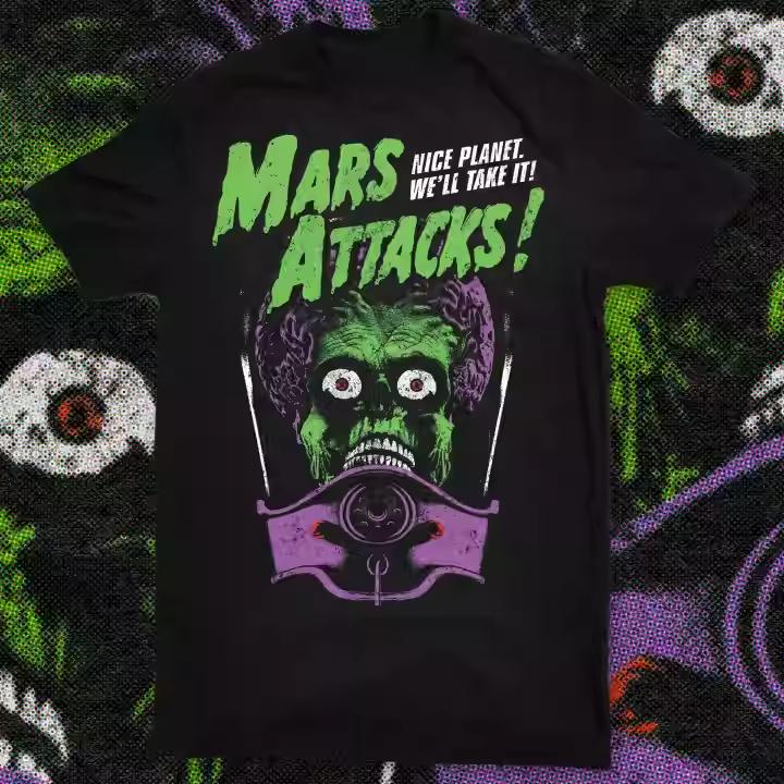 Martiens Jouent Terre Mars Attacks High Street Vintage Showa Vintage T-shirt de Film Américain T-shirt à Motif d'Alphabet Vintage cm