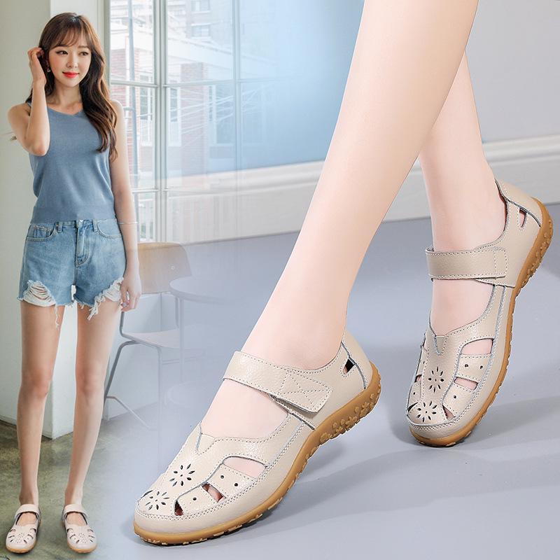 Women's Cut-Out Casual Sandals - Half Size Larger, Flat, Spring/Autumn Outdoor Slippers cm