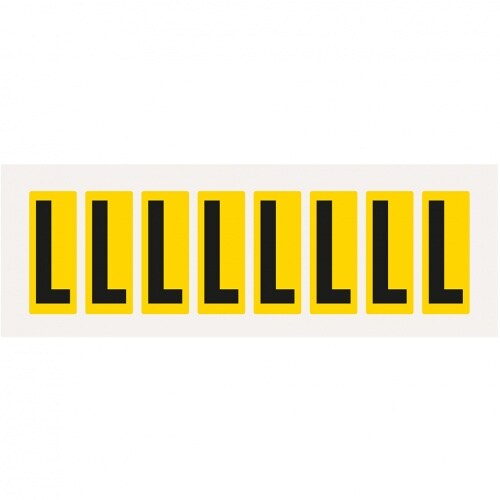 Aufkleber I Buchstabe L, gelb/schwarz, Folie, Schrifthöhe 50mm, 22x57mm, 160 Stück/Packung