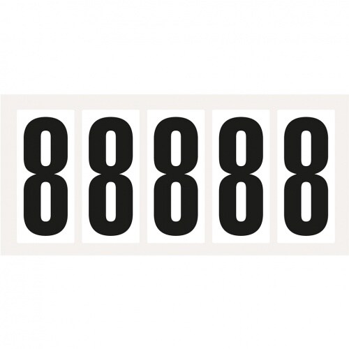 Aufkleber I Ziffer 8, weiß/schwarz, Folie, Schrifthöhe: 25mm, 32,5x14,9mm, 5 Bogen/VE, 10/Bogen