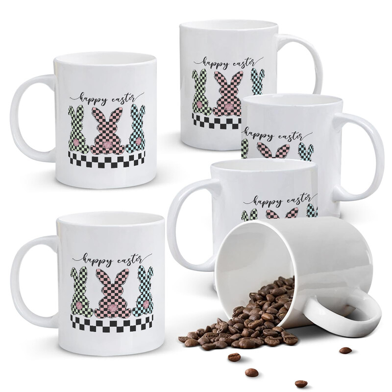 Alphynix 1 Fröhliche Ostern Tasse, 33cl Keramik-Kaffeetasse mit karierten Hasen und rosafarbenen Hintern, funky modernes Geschenk für Teens, Erwachsene,Geschenk zum valentinstag, geschenk zum geburtstag
