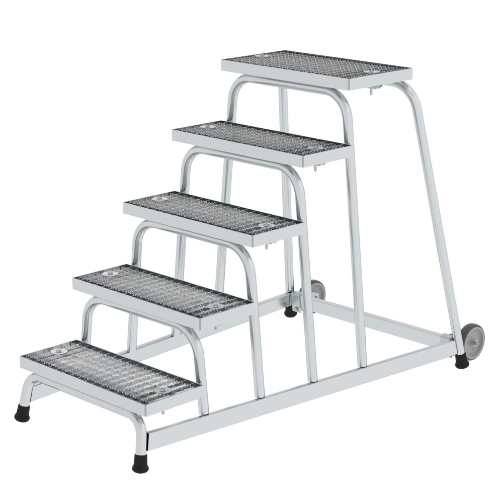 PROREGAL Arbeitspodest starr mit Rollen | 5 Stufen | Stahl-Gitterrost | Rutschfeste Kunststoffschuhe