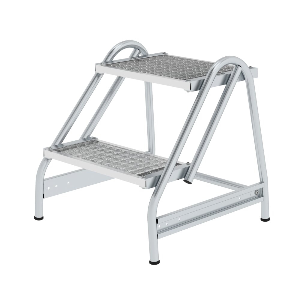 PROREGAL Arbeitspodest einseitig begehbar | 2 Stufen | Stahl-Gitterrost | Rutschfeste Kunststoffschuhe