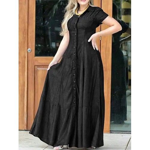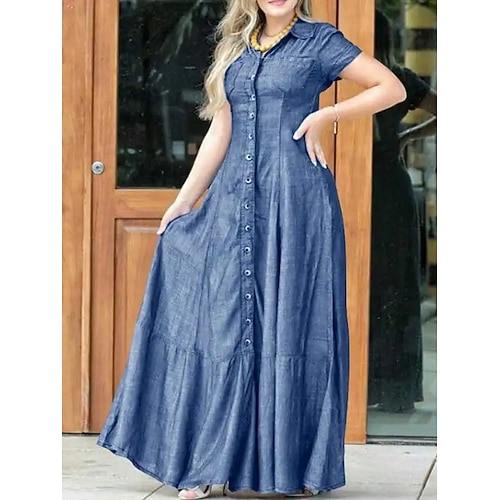 Per donna Abito lungo maxi Abiti di jeans Moda Moderno Quotidiano Vacanza Uscire Vestibilità regolare Semplice Manica Corta Colletto a Camicia Blu Nero Blu scuro Estate Primavera