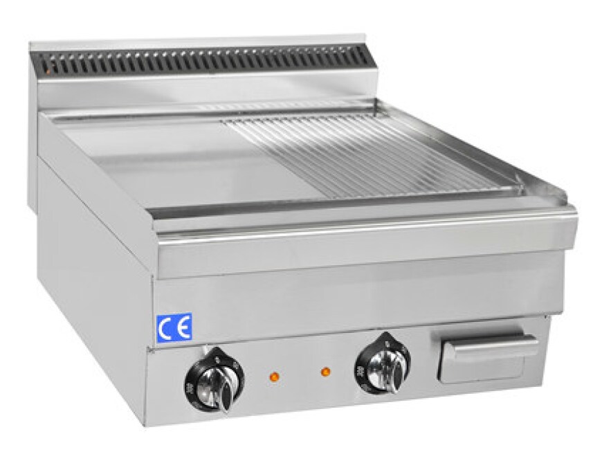 Elektro-Grillplatte 600 x 630 mm je zur Hälfte glatt/gerillt