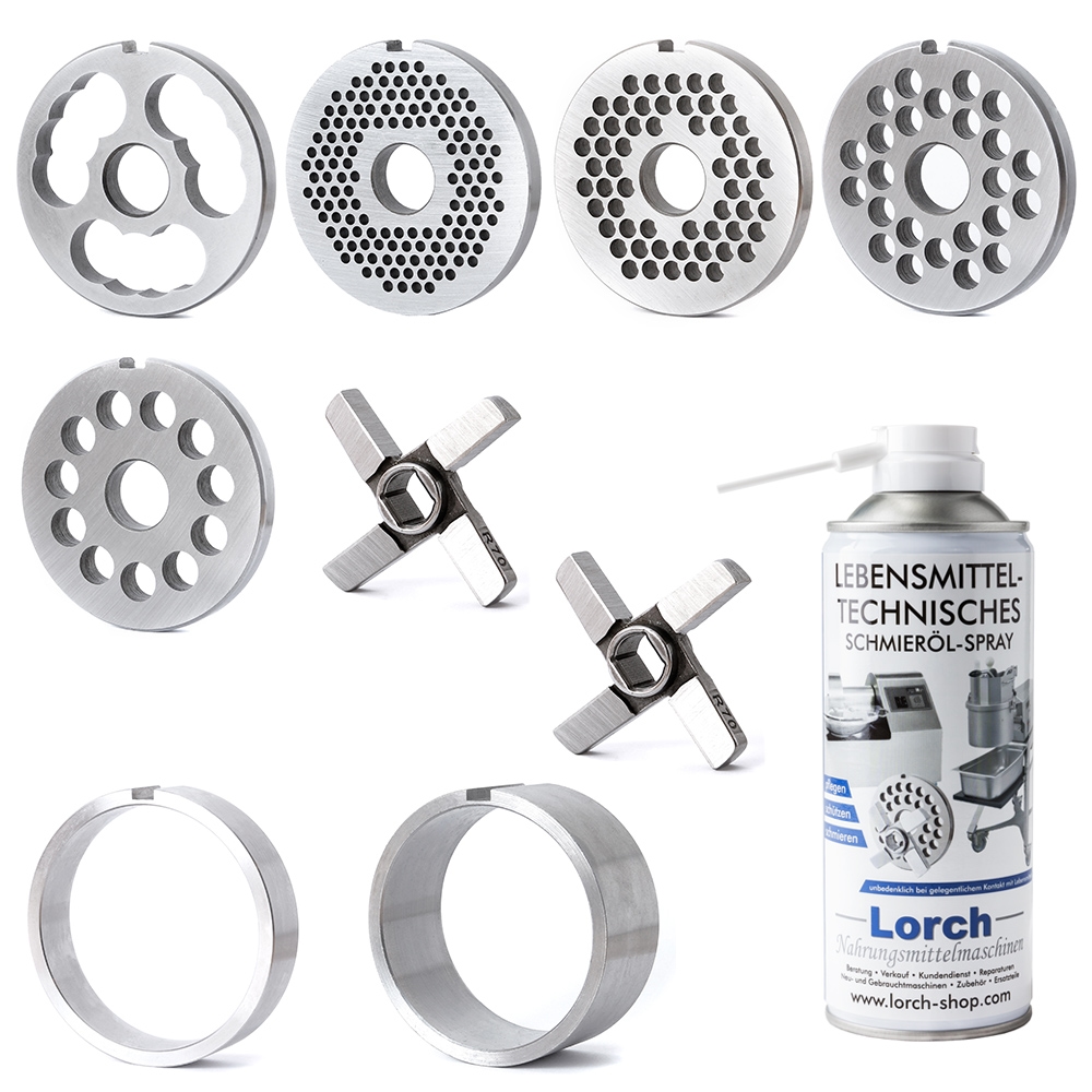 Set Fleischwolf Schneidsatz R70 Unger mit Bund -groß- mit LORCH-Spray - Lochscheiben Kreuzmesser