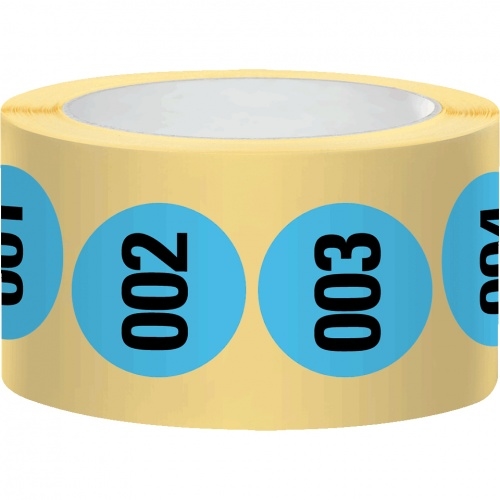 Aufkleber I Markierungspunkt, numeriert 001-500, hellblau, Haftpapier, ablösbar, Ø 25mm, 500/Rolle