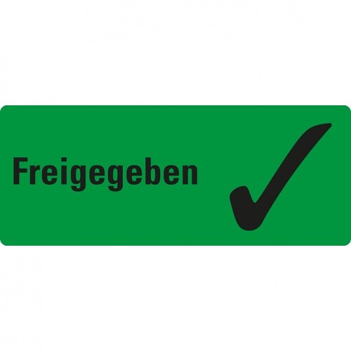 König Werbeanlagen Dreifke® Organisationsetik. Freigegeben, Pikto, grün, Haftpapier, ablösbar, 50x20mm, 500/Rolle
