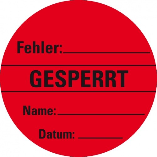 Aufkleber I Organisationsetikett Gesperrt, rot, Haftpapier, ablösbar, Ø 60mm, 500/Rolle