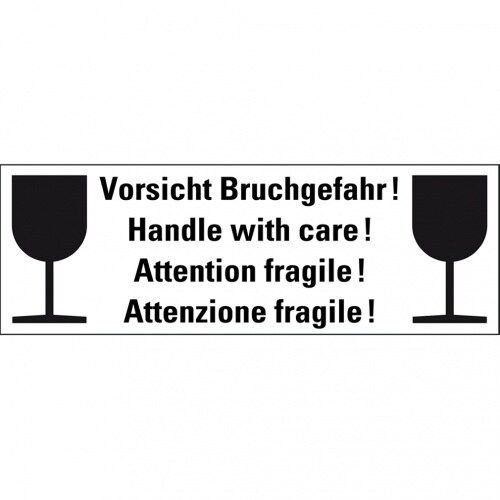 Dreifke® Hinweisetikett Bruchgefahr!, 4-sprachig, weiß, Haftpapier, perm., 170x60mm, 250/Rolle