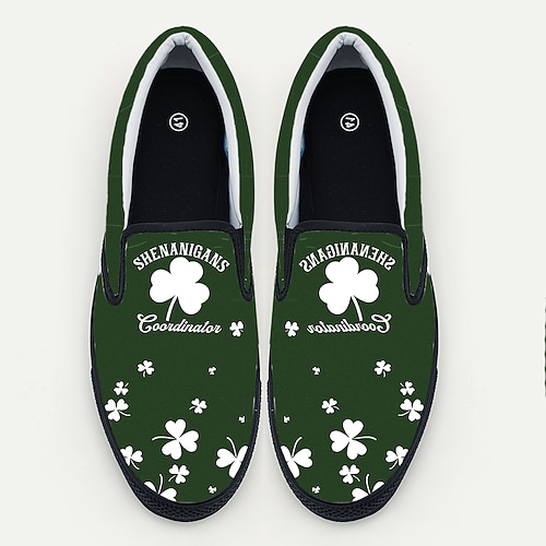 sneakers slip-on da uomo verdi per il giorno di San Patrizio: comode ed eleganti con stampa a trifoglio, ideali per feste, celebrazioni festive e abbigliamento casual