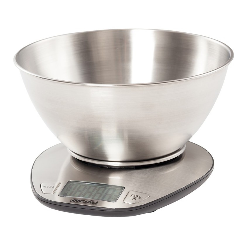 Mesko MS3152 Digitale Küchenwaage mit abnehmbarer Schale, Schale 1,8 L, Edelstahl, Flüssigkeitsmessung, Genauigkeit 1g, Silber