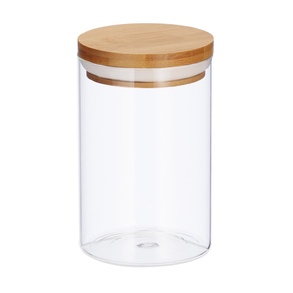 Relaxdays Vorratsdosen Glas, 3er Set, für Pasta, Reis, Müsli, Kaffeebohnen, Volumen 800 ml, HxD 16x9,5 cm, Bambus, natur